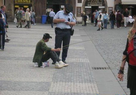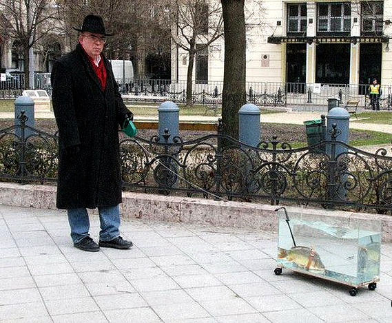 Dat kan volgens mij alleen in Engeland, je Karper uitlaten in z'n vissenkom op wieltjes......."are you enjoying yourself old chap"!