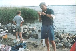 Hans en Eric op een mooi viseiland ergens op een groot Fries meer.