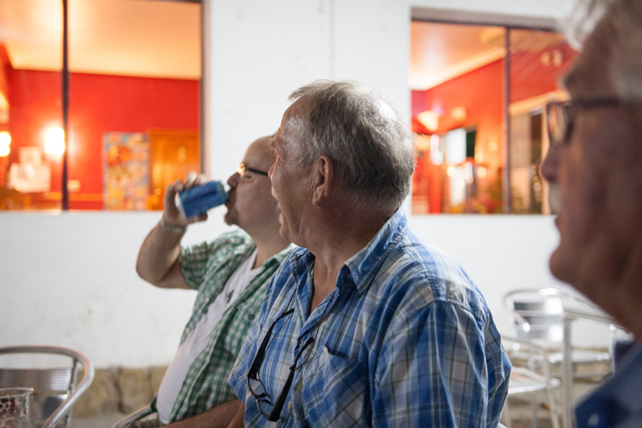 Het is dan wel gebruikelijk dat men in Zuid Europa na 21 uur nog aanschuift in een restaurant, maar in Caspe bleken onze dorpsgenoten en mede los turistas deze dinsdagavond voor een andere locatie te hebben gekozen. We waren de enige gasten maar daarom niet minder welkom bij onze vaste patrón-camarero van de Vistripweek Manuel. In overleg met frequente Spanje bezoekers Eric en Max stelde hij een Tapa’s menu samen, waarna met het eerste (en zeker niet laatste) rondje vino, cerveze en cuba libre op een fraaie aanstaande Vistripweek werd getoast......SKOLL !