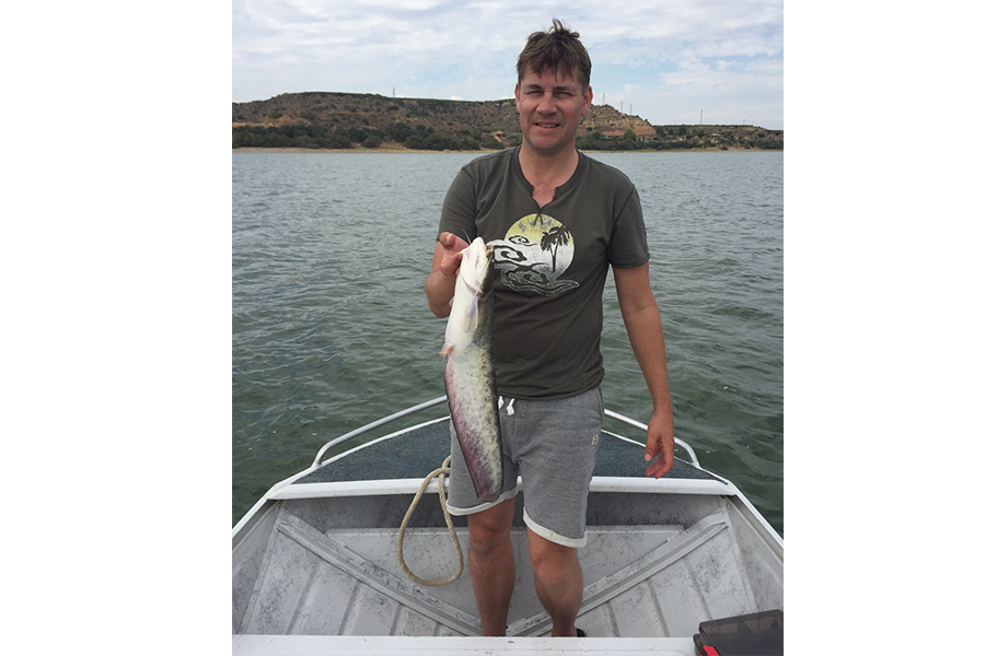 Hij stapte in één van de visboten met een Meervalhengel met een joekel dobber op de lijn en ging het stuwmeer op. En Herman illegaal op pad tijdens een Vistrip is een gevaarlijke concurrent. Ik hoef alleen ‘Ierse Pike’ en ‘Riomar Palometa’ te vermelden en de volgers van de Vistripperssite weten wat bedoeld wordt.