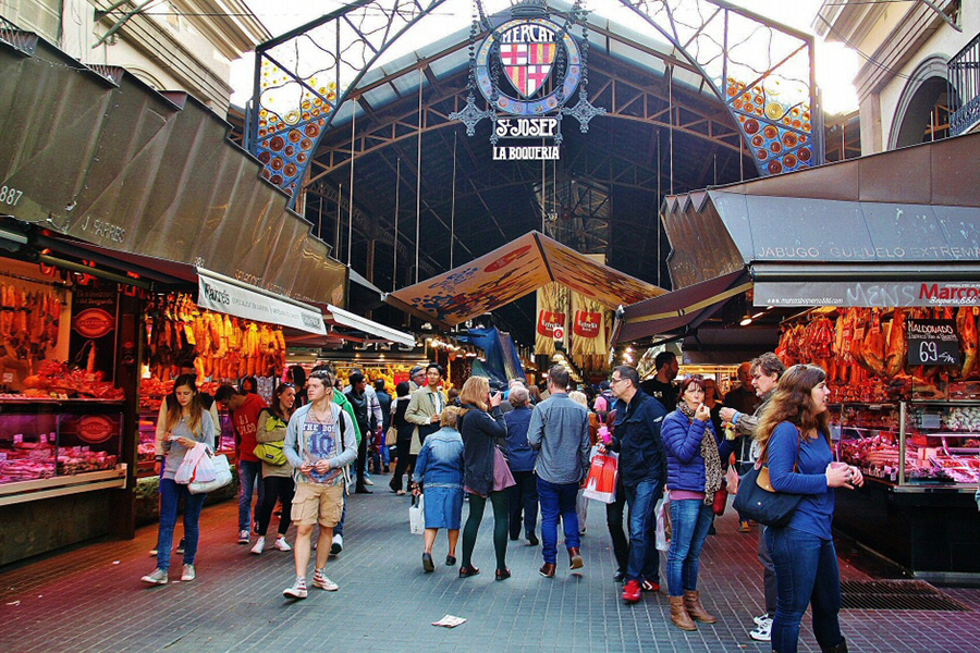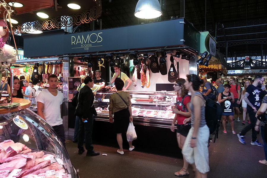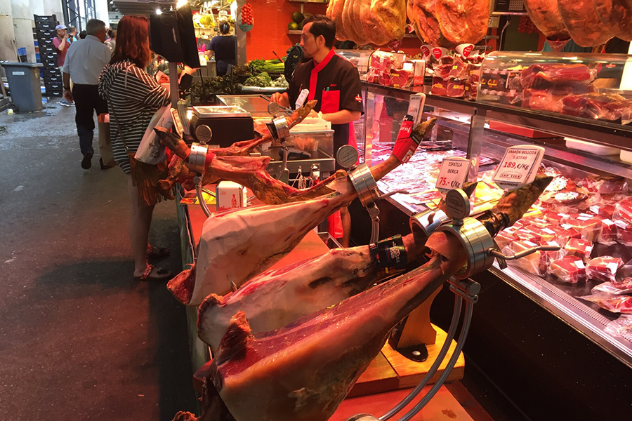 We wilden de laatste Vistripdag in Barcelona optimaal benutten, dus ondanks dat Margaret de vorige dag had gezegd dat we rustig de tijd mochten nemen op onze laatste ochtend in Caspe, schoven alle Vistrippers rond 9 uur hun voeten onder de ontbijttafel. We wilden ruim voor de middag lunchen op de overdekte markt op de Ramblas, Mercat de Sant Josep de la Boqueria dus geen uitgebreid ontbijt op ons dakterras.