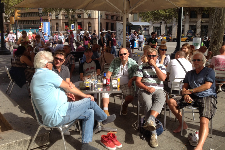Hadden we bij de eerste Vistrips regelmatig vertragingen oplopend tot een dikke 3 uur, sinds je die maatschappijen een claim aan hun broek kunt hangen als schadevergoeding na een vertraging hebben we geen last meer van die ongein. Stipt 12.25 uur vertrokken de Vistrippers richting Spanje. Amper tijd voor een biertje, wijntje, cola of het is touchdown op Barcelona Airport. Ralf en Marc waren de piloten van de week en gingen richting Europcar om de auto’s te regelen, de rest van de Vistrippers ging de bagage halen. Aan de balie van Europcar kreeg Ralf te maken met een onvervalst stukkie Spaanse ‘paarse krokodil ambtenarij’. Uiteraard had Ralf alle noodzakelijke gegevens vooraf via internet ingevuld, maar tot z’n stomme verbazing kon hij alles (op verzoek van de Europcar ambtenaar) nogmaals met pen op papier herhalen. Dit alles onder toeziend ook van medepassagier Barry Hughes, oud trainer van AZ. Die leuke kennismaking met deze football karakter uit vervlogen tijden was het enige bijkomende voordeel van het totaal onnodige oponthoud.