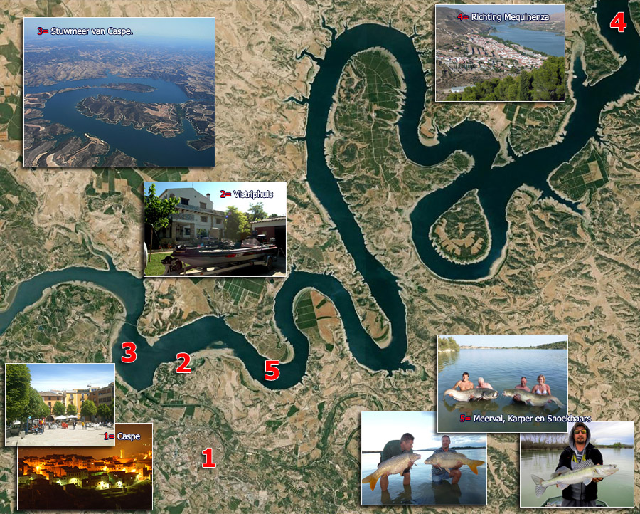 Wij zijn een professioneel bedrijf met jaren lange ervaring ook op visgebied met ervaren gidsen en een uitstekende service. Direct aan het mooie bovenmeer van de Spaanse rivier de Ebro, ook wel genoemd: Mar de Aragon en Embalse de Mequinenza, daar bevinden wij ons, op steenworpafstand van de plaats Caspe.